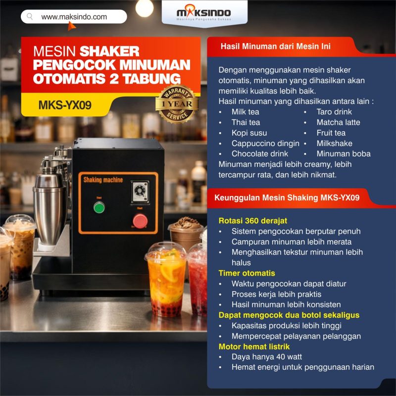 - Kualitas Minuman Lebih Baik: Mesin Milkshake YX-02 Maksindo memastikan bahwa setiap minuman yang Anda nikmati memiliki tekstur dan rasa yang optimal. Rasakan setiap tegukan dengan mutu premium.