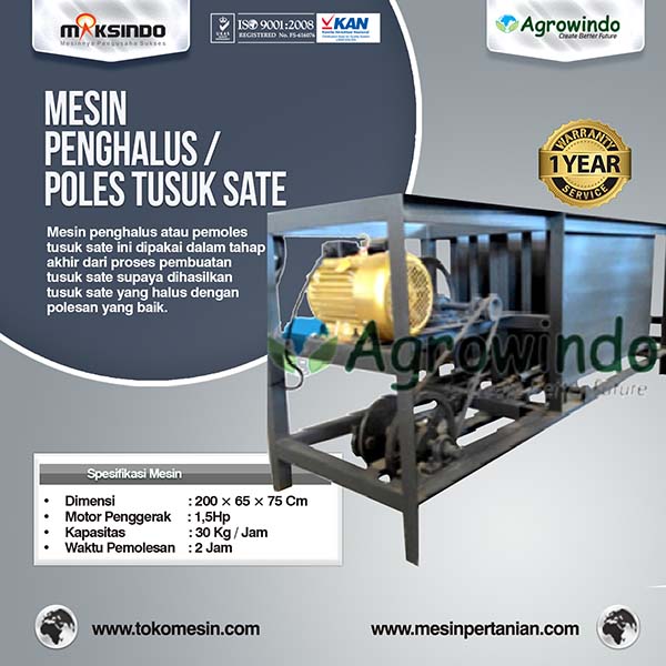 Mesin penghalus atau pemoles tusuk sate ini dipakai dalam tahap akhir dari proses pembuatan tusuk sate supaya dihasilkan tusuk sate yang halus dengan polesan yang baik.