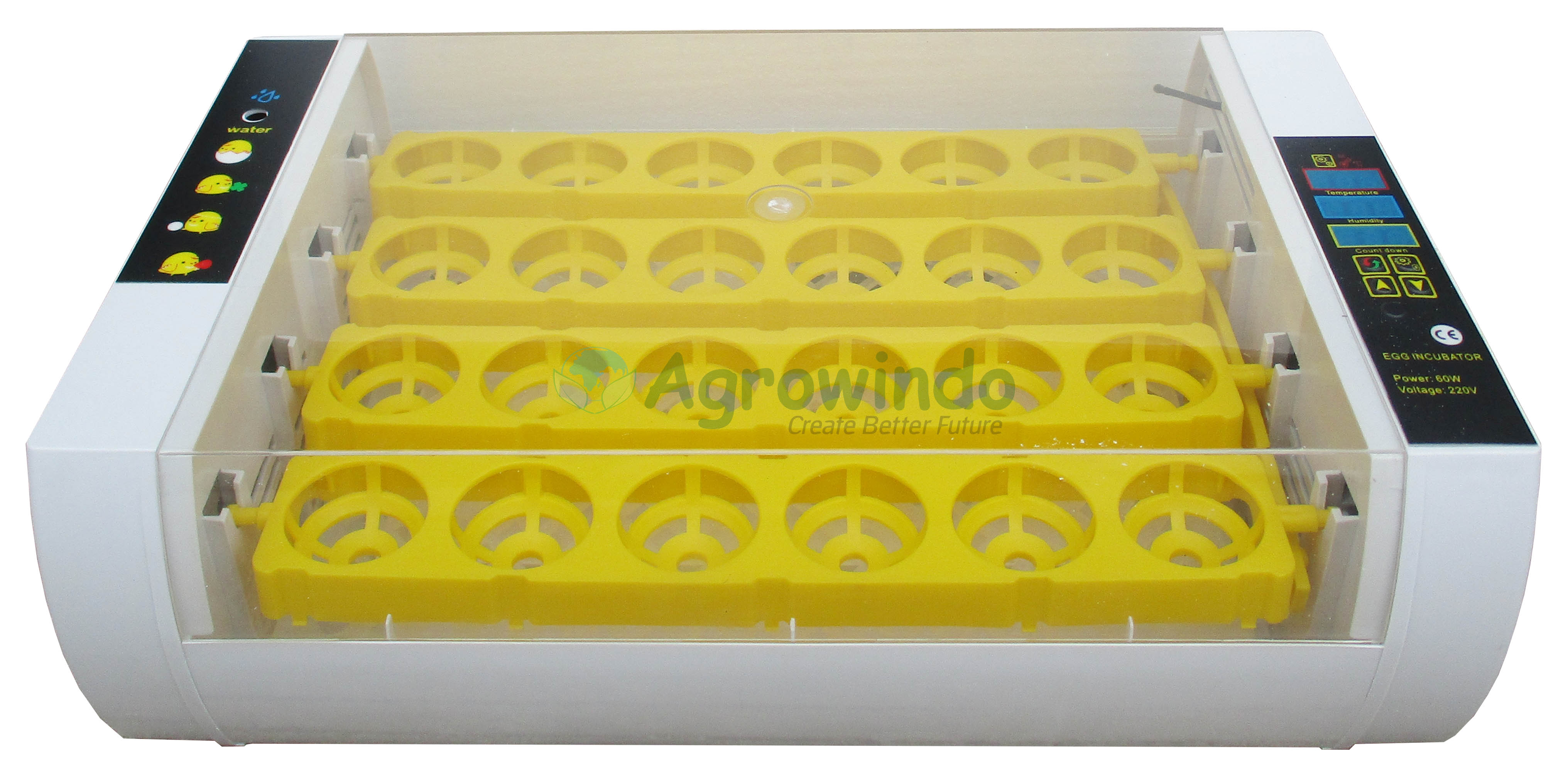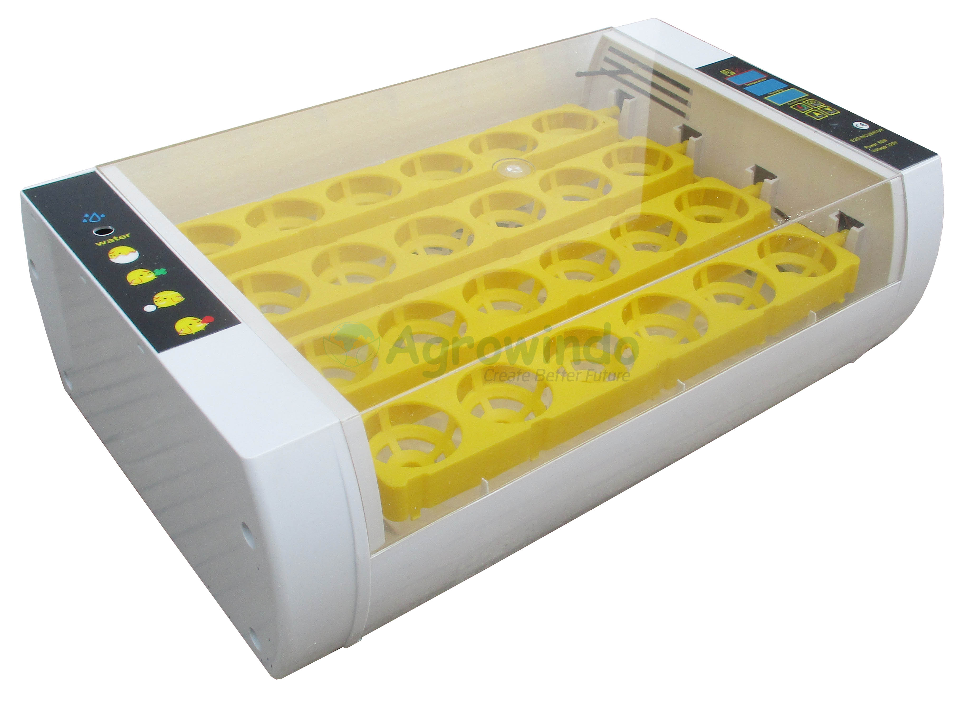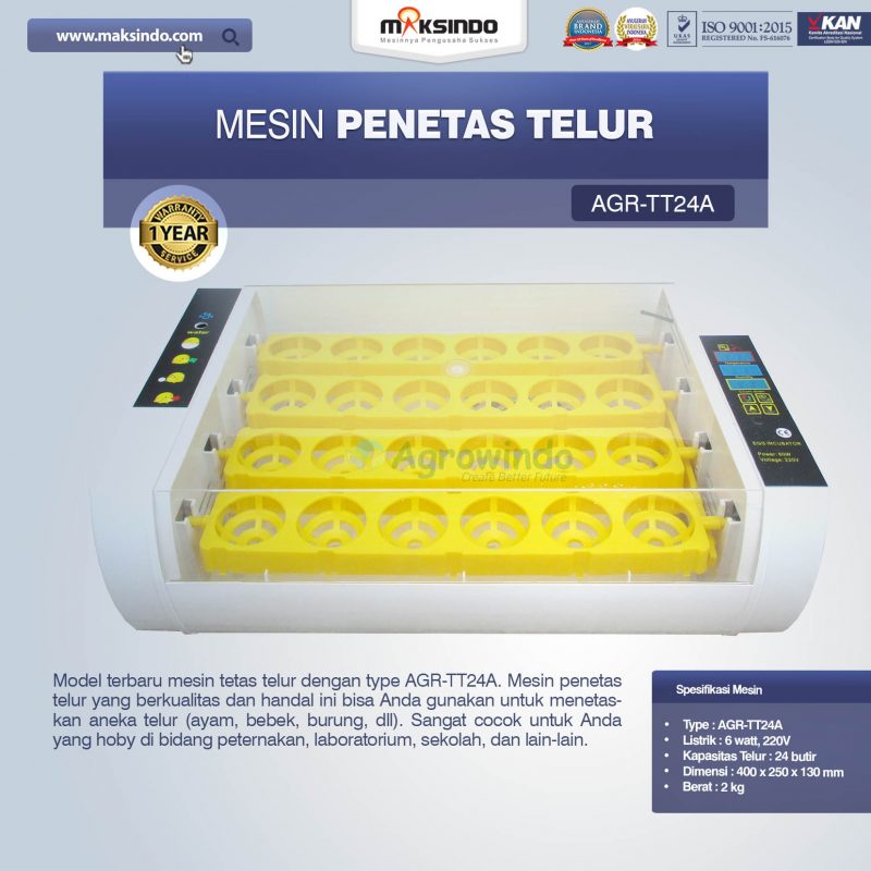 Model terbaru mesin tetas telur dengan type AGR-TT24A. Mesin penetas telur yang berkualitas dan handal ini bisa Anda gunakan untuk menetaskan aneka telur (ayam, bebek, burung, dll). Sangat cocok untuk Anda yang hoby di bidang peternakan, laboratorium, sekolah, dan lain-lain.