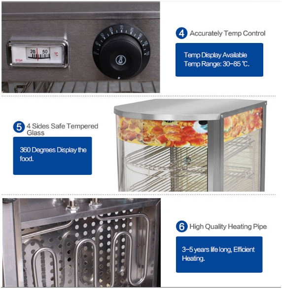 - Empat sisi kaca, sehingga makanan terlihat dengan jelas
