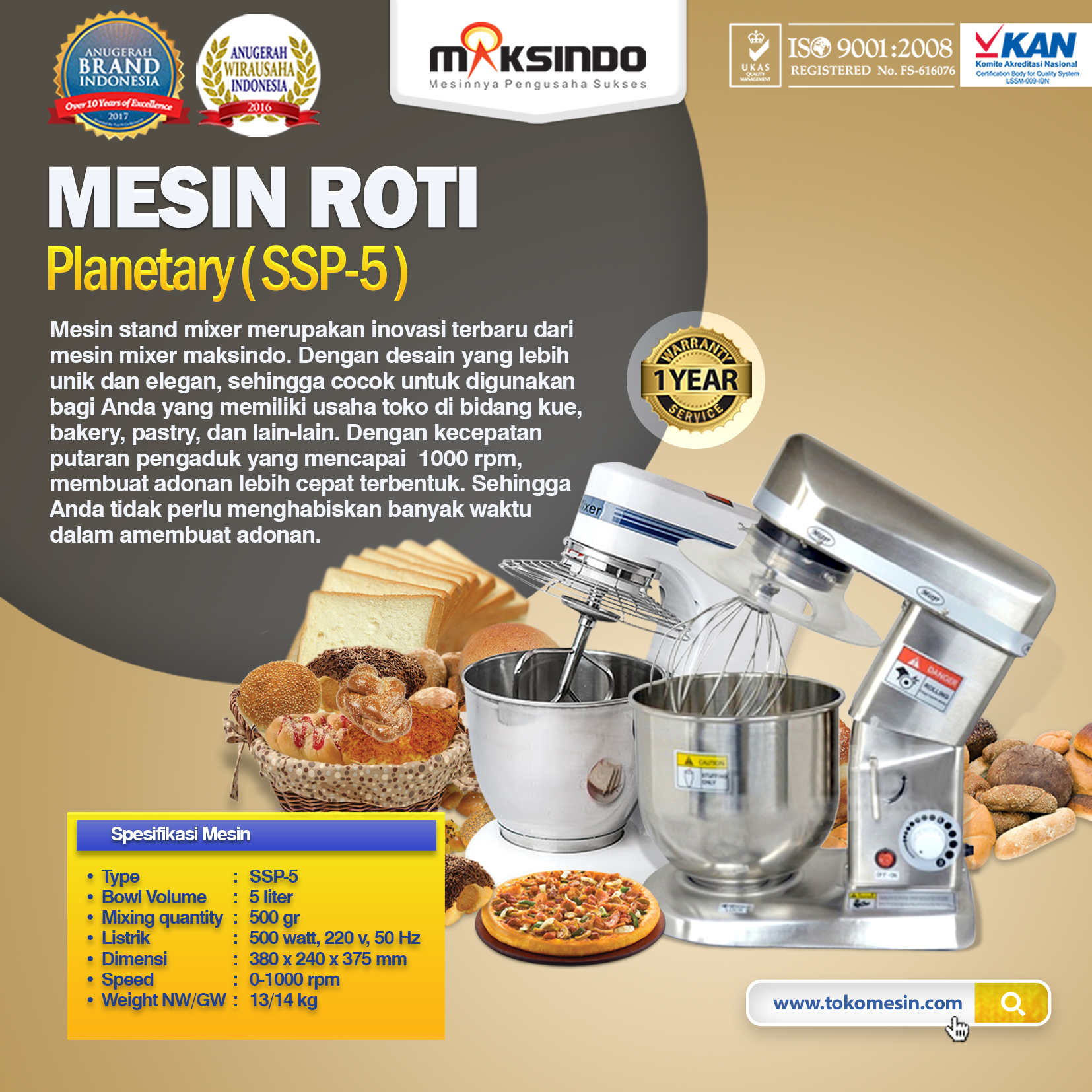 Mesin Mixer Planetary 5 Liter Stainless (SSP-5) 1 tokomesin malang