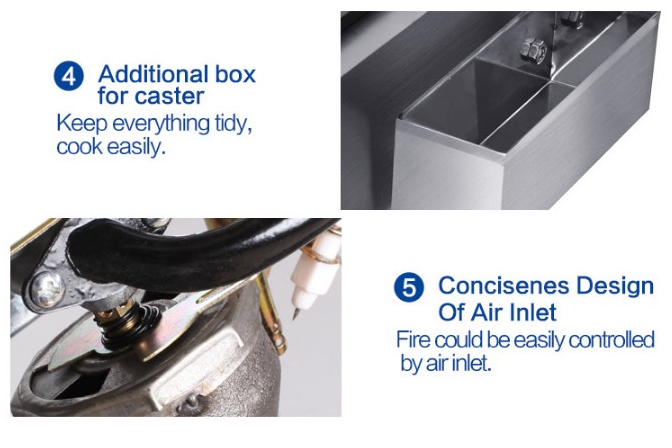Dilengkapi box penampung (bisa untuk sisa-sisa / rontokan takoyaki). sehingga menjaga mesin tetap bersih